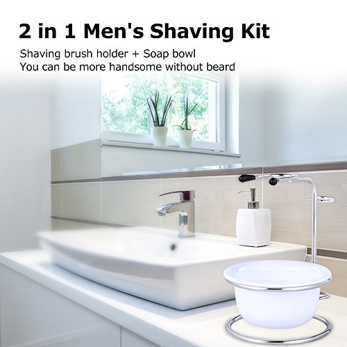 Ein Rasierpinselhalter und eine Rasierseife Schüssel enthalten, treffen Sie Ihre grundlegenden Rasur braucht.