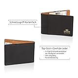EDLES GESCHENK – das schicke Karten-Portemonnaie, Portmonaise überzeugt durch ein klassisches und kompaktes Design. Sie erhalten dieses Premium Karten Etui in einer edel verpackten schwarzen Geschenke Box mit Gold Logo.
