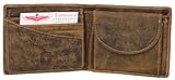 Rustikale Geldbörse 1 Münzfach mit Druckknopf 2 Fächer für Scheine 2 tiefe Steckfächer 1 Steckfach 6 Steckfächer für Kreditkarten 1 Ausweisfach Marke: Greenburry Typ: Geldbörse Modell: Vintage Material: Rindleder gebürstet/gewachst Farbe: antikbraun Maße: 12x10x3,5cm Format: Trifold quer