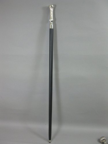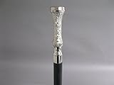 Vintage Gehstock Wanderstock Spazierstock Hartholz schwarz mit vernickeltem Metallgriff 96cm lang,430Gramm schwer belastbar bis 100 Kg super Qualität