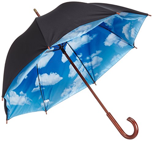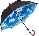 Der außen klassische Regenschirm Sky (von Tibor Kalman für MoMA) blendet die Schlechtwetterfront einfach aus und schenkt uns die Illusion eines blauen Sommerhimmels mit weißen Schönwetterwölkchen. in zwei Ausführungen als Stock- oder Mini-Taschenschirm.