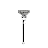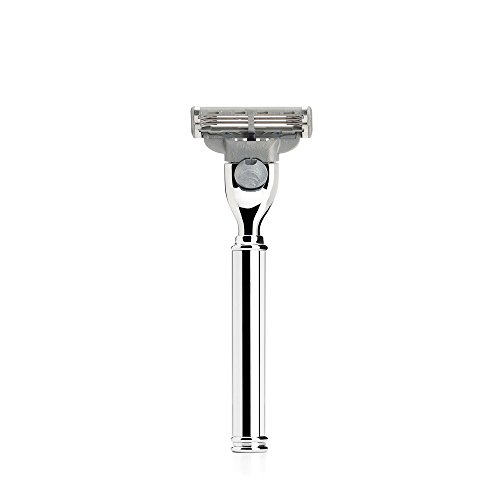 Die Serie – TRAVEL Für Frequent-Traveller und alle diejenigen, die auch auf Reisen gut rasiert sein wollen. Die Produkte der Serie TRAVEL bieten alle Gebrauchseigenschaften der konventionellen Serien – aber sie lassen sich platzsparend in den schicken Lederetuis verstauen und bequem mitnehmen. Der Griff Chrom ist ein silberfarbenes Metall, das in galvanischen Verfahren verarbeitet wird. Griffe und Formkörper aus Messing werden zunächst vernickelt und anschließend mit Chrom stilvoll veredelt. Der Rasierkopf & die Rasierklinge Das Gillette-Mach-3-System ist eines der am häufigsten verwendeten Rasiersysteme mit 3 übereinander angeordneten Klingen. Es rasiert schonend und gründlich. Klingen sind überall im Handel erhältlich. Der Nassrasierer ist kompatibel mit Gillette® Mach3® und Mach3® Turbo. Der Nassrasierer wird mit einer Rasierklinge geliefert.