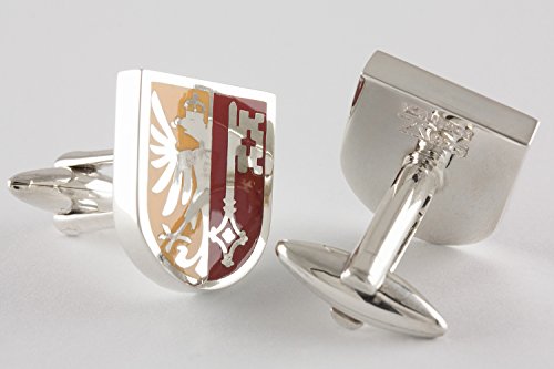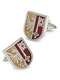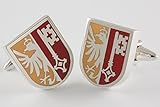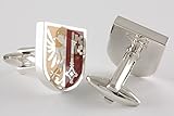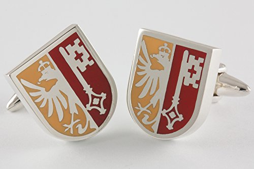 Handgefertigte Manschettenknöpfe mit dem Genfer Stadtwappen aus 925er Silber. Der farbige keramische Werkstoff wurde von Hand eingelegt und sorgt für eine robuste und stoßfeste Oberfläche.